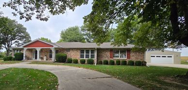 This exceptional, handicap-accessible ranch-style home, situated on 4.91 acres with city water and sewer, offers convenient access just outside city limits. The main floor boasts four bedrooms, two full bathrooms, and a half-bathroom, along with a private office, eat-in kitchen, formal dining room, and two living areas-one formal and one featuring a fireplace. The basement includes a living room, a non-conforming bedroom, 3/4 bathroom and a spacious family room. Further enhancing this property are an elevator and an in-ground pool. A substantial 42' x 140' shed is also located on the grounds. Showings commence May 19, with additional interior photographs forthcoming.